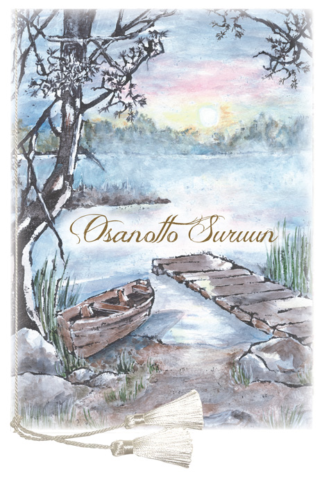 Yksi sivuista on ns. tyhjä sivu, ilman valmista osanottorunoa, joten siihen voi kirjoittaa haluamansa tervehdyksen. Kolmessa muussa sivussa on surun osanottoon koskettavat muistosanat.