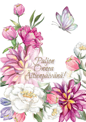 Kauniit ja hempeät äitien- sekä isänpäiväkortit välittävät sydämellistä tunnelmaa. Jokainen kortti on suunniteltu osoittamaan lämpöä, rakkautta ja kiitollisuutta rakkaan vanhemman muistamiseen. ” Onnea äitienpäivänä” tekstinsä puolesta kortti sopii kaikille, jotka äitienpäivänä juhlivat, myös isomummoille ja mammoille. Valikoimasta löytyy kaksi korttia, joilla muistaa isää, vaaria tai pappaa.